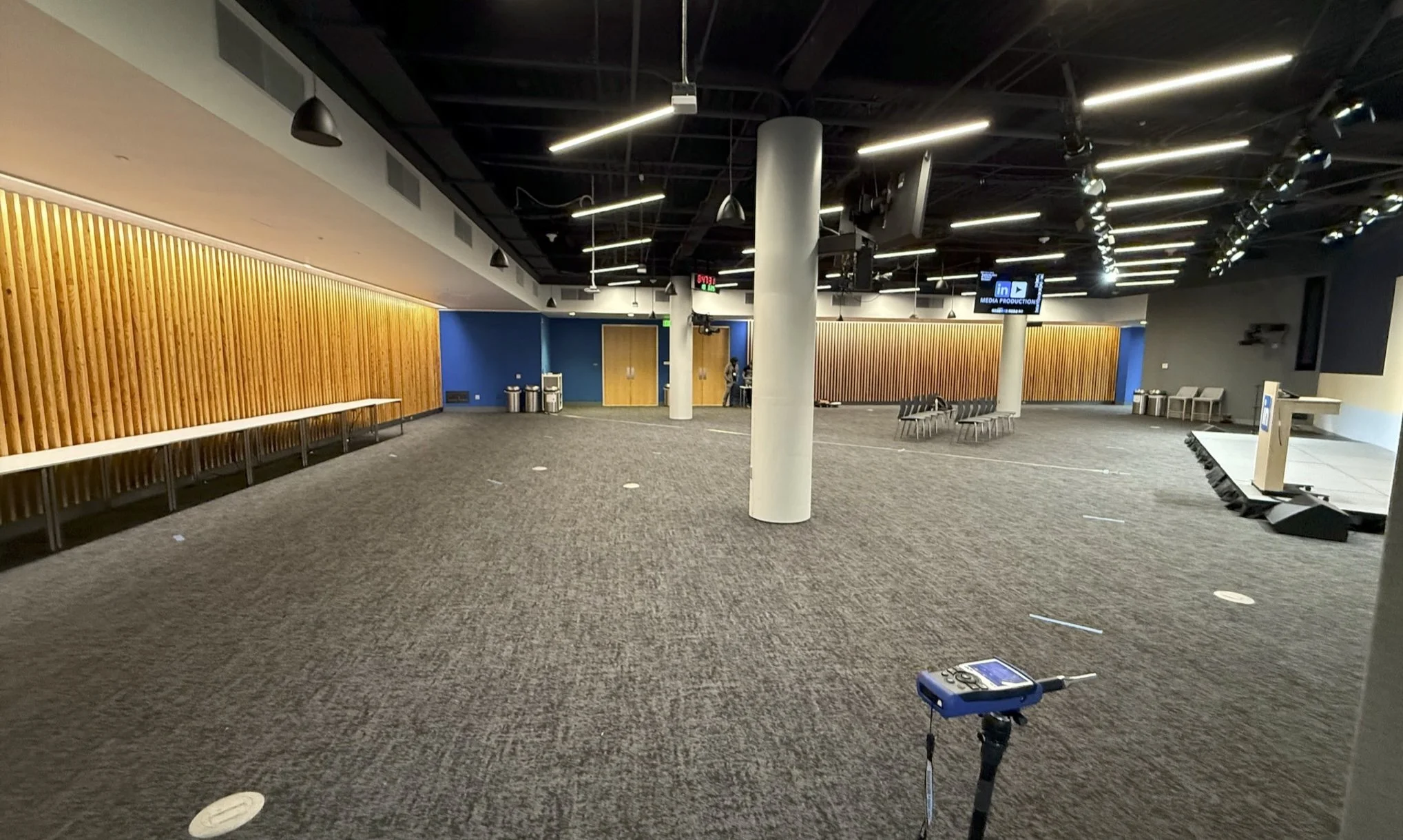 The study centered on understanding how the existing spaces function in real world use, where speech intelligibility, amplification, and operational reliability are critical to production.